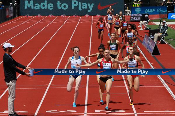 There was another small piece of athletics history etched in the books in the international mile, where Australia’s Luke Mathews became the 400th athlete to break the sub-four-minute mile at Hayward Field, Mathews playing his cards late and to great effect when swooping to victory in 3:57.02. Drew Hunter claimed a decent second in 3:57.29, with fellow US athlete Henry Wynne third in 3:57.61.