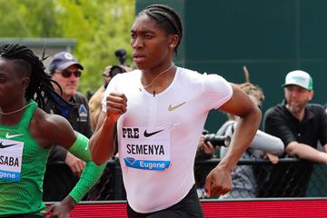 South Africa's Caster Semenya produced another brilliant display in the 800metres to set a meeting record and world lead of 1:55.92 at the Prefontaine Classic in Eugene.